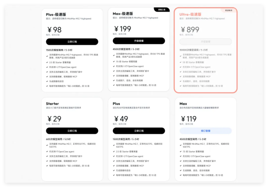 MiniMax 的 M2.7 模型 Coding Plan,在代码理解和生成方面表现出色。支持多种编程场景,包括 Web 开发、数据分析等。